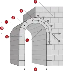 - All building naturally divides into two classes, the architecture of the beam and that of the arch, which have been called trabeated and arcuated—according to the means which it uses for covering openings and spaces—the first being that which covers them by beams or lintels, the second that which uses arches. The logical development of the two classes leads in the one to flat ceilings and straight roofs, in the other to vaults and domes.