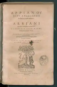 - Arrian, Anabasis Alexandri, Book VII : Indica, as translated by Edgar Iliff Robson (1929), p. 18