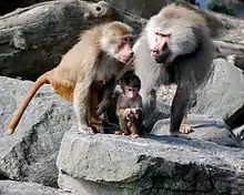 Baboons are African and Arabian Old World monkeys belonging to the genus Papio, part of the subfamily Cercopithecinae. The five species are some of the largest non-hominoid members of the primate order; only the mandrill and the drill are larger.
