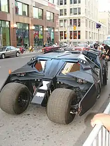 There's another problem with "Batman Begins": Batman's stuff has no soul. His mask, with its alert, pointed ears, does manage to give Bale a somber grace from some angles. But Bale (unlike Keaton) has trouble connecting from beneath it -- it wears him instead of the other way around. In a movie whose production design is both massively ambitious and uninspired, the Batmobile is one of the biggest bummers of all: It's like a squat bug covered with clumsy square scales, a dismally unromantic vehicle that looks wholly unsuited for parallel-parking practice, let alone flying through the streets of Gotham.