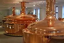 - The boiling of the wort... is another one of the essential phases of brewing. ...It is at this stage that the hop is added to the wort, but not until after the latter has boiled a sufficient time. Usually, the boiling requires four hours; at the expiration of the third hour, or still later, perhaps, the brewer will empty the contents of several large sacks full of aromatic hops into the copper, thus adding the bitter principle to the saccharine. ...At present, the average brewer fully understands that he can extract the essence of the hops without excessive boiling. The object of the boiling is: 1. To concentrate the wort; 2. To extract the essence of the hop; 3. To coagulate the unchanged albuminous substances and cause them to settle, together with the unconverted starch which if allowed to remain intact, would materially militate against the preservation of the beer. But this does not do justice to the important functions of hops... the action of this tender plant upon the wort. ...Without it, beer would be nothing more than fermented barley-juice, which... was known to the most ancient nations. Without it, beer could not be preserved for any length of time, and both in appearance and flavor would be greatly inferior to the drink of today. Hence, hops not only impart to beers their pleasantly bitter and aromatic flavor, but they also assist in clarification and produce the preservative qualities. The two principal substances which the hop-cone yields, when boiled, are lupulin and tannin, and it must be the brewer's aim to extract these in just that proportion... The diminutive sparkling grains of the hop flower, called lupulin, are closely wrapped up in the centre of the hop cone, and should be laid bare before the plant is placed in the copper. To this end most brewers will break up the hops...