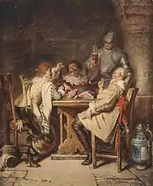 - Hrothgar spake, the protector of the Scyldings; "For a defence, O my friend Beowulf, and for a succour hast thou sought us. Thy father avenged by striking, the mightiest of feuds: he was the slaughterer of Heatholaf, among the Wylfings... Full oft drunken with beer, the sons of battle promised over the ale cup, that they would in the beer-hall await Grendel's war, with the terrors of swords. Then was this meadhall at the morning tide, this palace stained with gore when the day dawned; all the benched floor reeking with blood, the hall with gore shed by the sword: I owned all the fewer of my faithful retainers, my dear young men whom there death took away. Sit now to the feast, and joyfully eat, exulting in victory among my warriors, as thy mind may excite thee." Then was for the sons of the Geats, altogether, a bench cleared in the beer-hall; there the bold of spirit, free from quarrel, went to sit: the thane observed his office, he that in his hand bare the twisted ale cup; he poured the bright sweet liquor; meanwhile the poet sang serene in Heorot, there was joy of heroes, no little pomp of Danes and Westerns.
