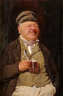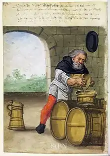 Of bere. Bere is made of malte, of hoppes, and water: it is a naturall drynke for a Dutche man. And nowe of late dayes it is moche used in Englande to the detryment of many Englysshe men; specyally it kylleth them the which be troubled with the colycke, and the stone [kidney- or gallstone], & strangulion [inflammation of the throat]; for the drynke is colde drynke; yet it doth make a man fat, and doth inflate the bely, as it doth appere by the Dutche mens faces and belyes. If the bere be well served, and be fyned, & not new, it doth qualyfy the heat of the lyver.- Andrew Boorde, A compendyous regyment, or, A dyetary of helth made in Mountpyllier (c. 1540) included with The fyrst boke of the introduction of knowledge made by Andrew Borde, of physycke doctor.(1870) p. 256.