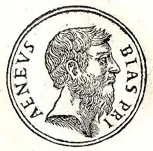 Bias (Greek: Βίας ο Πριηνεὺς, 6th century BC), the son of Teutamus and a citizen of Priene was a Greek philosopher. Satyrus called him the wisest of all the Seven Sages of Greece.