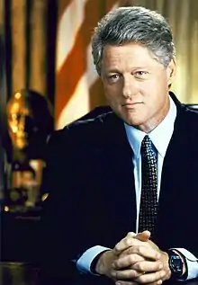 William Jefferson "Bill" Clinton (born William Jeffersen Blythe III ; 19 August 1946) is an American politician and the 42nd president of the United States of America, and the husband of Hillary Rodham Clinton.