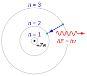 - Bohr proposed in the first place that the energies of atoms are quantized, in the sense that the atom exists in only a discrete set of states, with energies (in increasing order) E1, E2, . . . . The frequency of a photon emitted in a transition m → n or absorbed in a transition n → m is given by Einstein’s formula E = hν and energy conservation by . … Bohr’s formulas could be used not only for single-electron atoms, like hydrogen or singly ionized helium, but also roughly for the innermost orbits in heavier atoms, where the charge of the nucleus is not screened by electrons, and we can take Ze as the actual charge of the nucleus.