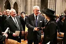 Margaret Thatcher, Brian Mulroney et Mikhail Gorbachev, le 11 juin 2004 en la cathédrale de Washington lors des funérailles de Ronald Reagan.