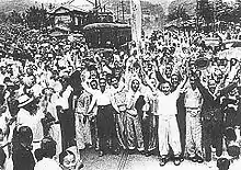 - The DPRK derives its legitimacy from the myth that the anti-Japanese hero Kim Il Sung was all right-thinking citizens' choice as the man to found and lead the new Korea after liberation in 1945... Until the mid-1960s the USSR was credited with defeating Japan, but since then propaganda has claimed that Kim and his guerillas freed the race on their own. That this is known to be untrue by those who lived through the time is of minor importance. The painful historical reality of mass collaboration (and the military insignificance of all armed Korean resistance to colonial rule) is precisely what made the Kim myth so attractive.