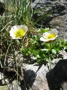 Buttercups (Ranunculus) are members a large genus of about 600 species of plants in the Ranunculaceae. Other members of the genus include spearworts, water crowfoots and the lesser celandine. All of these are mostly herbaceous perennials with bright yellow or white flowers (if white, still with a yellow centre); some are annuals or biennials. A few species have orange or red flowers. There are usually five petals, but sometimes six, numerous, or none, as in R. auricomus. The petals are often highly lustrous, especially in yellow species. Buttercups usually flower in the spring, but flowers may be found throughout the summer, especially where the plants are growing as opportunistic colonisers, as in the case of garden weeds.