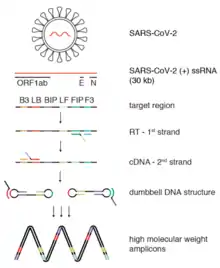 • Several other tests are based on a technique called loop-mediated isothermal amplification (LAMP), which also works at a constant temperature and has been used to identify viruses such as Zika. LAMP relies on two enzymes — one to convert the viral RNA to DNA, and another to copy DNA — as well as a set of four to six short primers designed to recognize different snippets of the viral genome. These fragments not only help to get the copying started, as in RT-PCR, but also allow newly copied DNA strands to form looped structures that can be amplified much more rapidly than in standard PCR (see ‘Loop the loop’). It is less accurate, however, and only a few dozen samples can be run at a time.