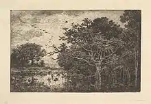 Daubigny, 1851: 'Swans in a Marsh', etching on laid paper; between fifth and sixth states; location: Metropolitan Museum of Art, Drawings and Prints, New York City