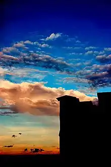 • The clouds that gather round the setting sun