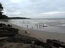 A Coast, coastline or seashore is the area where land meets the sea or ocean, or a line that forms the boundary between the land and the ocean or a lake. A precise line that can be called a coastline cannot be determined due to the Coastline paradox. A coastal zone is a region where interaction of the sea and land processes occurs. Both the terms coast and coastal are often used to describe a geographic location or region.