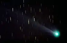 A comet is an icy small Solar System body that, when passing close to the Sun, heats up and begins to outgas, displaying a visible atmosphere or coma, and sometimes also a tail. These phenomena are due to the effects of solar radiation and the solar wind upon the nucleus of the comet. Comet nuclei range from a few hundred metres to tens of kilometres across and are composed of loose collections of ice, dust, and small rocky particles. The coma and tail are much larger and, if sufficiently bright, may be seen from the Earth without the aid of a telescope. Comets have been observed and recorded since ancient times by many cultures. Comets usually have highly eccentric elliptical orbits, and they have a wide range of orbital periods, ranging from several years to potentially several millions of years.