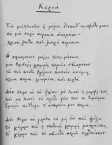 - As translated by Edmund Keeley and Philip Sherrard; edited by George Savidis, published online at The Official Website of the Cavafy Archive