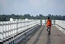Cycling is a recreation, a sport and a means of transport across land. It involves riding bicycles, unicycles, tricycles and other human powered vehicles (HPVs). A bicycle is a pedal-driven land vehicle with two wheels attached to a frame, one behind the other.