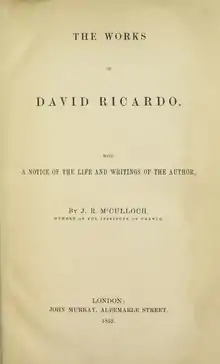 David Ricardo (19 April 1772 – 11 September 1823) was an English political economist, often credited with systematizing economics, and was one of the most influential of the classical economists. He was also a member of Parliament, businessman, financier and speculator.
