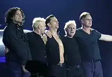 Depeche Mode are a highly influential English electronic music band, formed in 1980 in Basildon, Essex. The group consists of a trio of Dave Gahan (lead vocals and co-songwriting), Martin Gore (keyboards, guitar, co-lead vocals and main songwriting) and Andy Fletcher (keyboards). They are one of the longest-lived and most successful bands to have emerged from the New Wave and New Romantic era, but were actually part of the "futurist" scene. As of 2006, it was estimated that Depeche Mode have sold over 73 million albums worldwide.