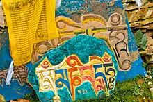 • Recitation of the mantra helps achieve perfection in the six practices from generosity to wisdom. The path of these six perfections is the path walked by all the Buddhas of the three times. What could then be more meaningful than to say the mantra and accomplish the six perfections?"