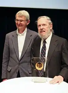 McIlroy (left) with former colleague Dennis Ritchie at the Japan Prize Foundation in May 2011.