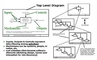 - Structured analysis (SA) combines blueprint-like graphic language with the nouns and verbs of any other language to provide a hierarchic, top-down, gradual exposition of detail in the form of an SA model. The things and happenings of a subject are expressed in a data decomposition and an activity decomposition, both of which employ the same graphic building block, the SA box, to represent a part of a whole. SA arrows, representing input, output, control, and mechanism, express the relation of each part to the whole.