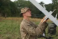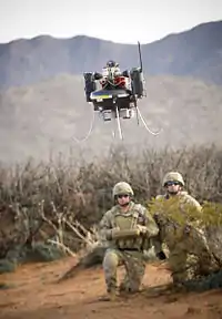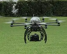 An unmanned aerial vehicle (UAV), commonly known as a drone, as an unmanned aircraft system (UAS), and also referred by several other names, is an aircraft without a human pilot aboard. The flight of UAVs may be controlled with various kinds of autonomy : either by a given degree of remote control from an operator, located on the ground or in another vehicle, or fully autonomously, by onboard computers.