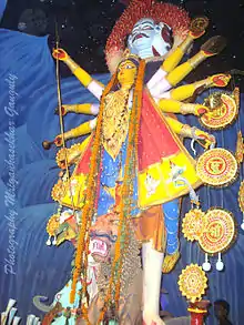 - Among followers of the goddess Durga, who are particularly predominant in Bengal and Assam, the Durga-puja (“Worship of Durga”) is celebrated during this period. Special images of Durga commemorating her victory over the buffalo demon Mahishasura are worshipped daily, and on the tenth day (Dussehra), they are in jubilant procession to nearby rivers or reservoirs for immersion in water.