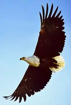 Eagles are large birds of prey of the family Accipitridae that mainly inhabit Eurasia and Africa, with a few species in the Americas and Australia. The eagle has been used by many nations as a national symbol, depicting power, beauty and independence, and is also a sacred or religious symbol in many cultures.