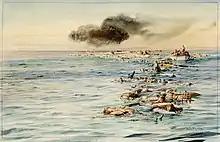 They did not move very far away from where they originally stood. As I moved to the other side of the ship, in preparation for a jump when the right moment came, I called to him, "What are you going to do?" and he just shook his head, while Mrs. Hubbard smiled and said, "There does not seem to be anything to do."