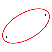 In mathematics, an ellipse is a curve in a plane surrounding two focal points such that the sum of the distances to the two focal points is constant for every point on the curve. As such, it is a generalization of a circle, which is a special type of an ellipse having both focal points at the same location. The shape of an ellipse (how "elongated" it is) is represented by its eccentricity, which for an ellipse can be any number from 0 (the limiting case of a circle) to arbitrarily close to but less than 1.