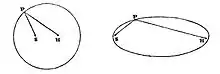- If now the point H be brought nearer to S than it was before, the length of the string remaining the same, and the curve be then described as before, it will be found to have altered its form, so as more nearly to approach that of a circle, as shown in the... figure, and H may be brought so near to S that its form shall scarcely be distinguishable from that of a circle, which figure it would indeed manifestly become, if the point H were made accurately to coincide with S.