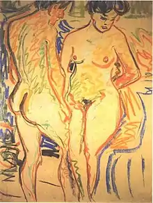 Kirchner, 1907: 'Two Nudes', oil on canvas; current location: National Gallery of Art Washington D.C.