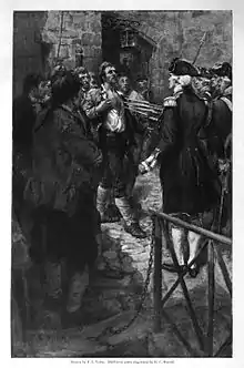 - His reply as to by what authority he demanded the surrender of Fort Ticonderoga, as recounted in A Narrative of Colonel Ethan Allen's Captivity (1779). Other reports indicate that he initially declared: "Come out of there you sons of British whores, or I'll smoke you out!" According to historian and folklorist B.A.Botkin, one Israel Harris was present at the time, and later told his grandson (the late Professor James D. Butler of Madison, Wisconsin) that Allen's actual words were "Come out of there, you goddam old rat!" See Paul F. Boller, Jr., and John George, They Never Said It: A Book of Fake Quotes, Misquotes, & Misleading Attributions (1989), p. 4.