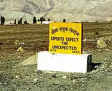 "Experts Expect the Unexpected." Roadsign in Nubra Valley, India.