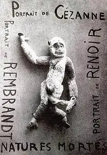 Picabia, 1920: Nature Morte, toy, monkey, and, ink, on cardboard (illustration in the Dada-journal 'Cannibale', no. 1.