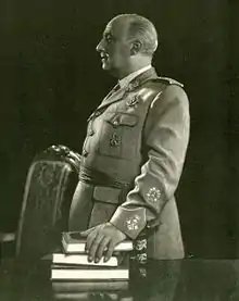 Francisco Franco Bahamonde (4 December 1892 – 20 November 1975), commonly referred to as Francisco Franco, was a military generalísimo, leader of Spain (Caudillo de España) from October 1936 (whole country from April 1, 1939 on), and de-facto regent of the nominally restored Kingdom of Spain from 1947 until his death in 1975.
