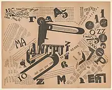 print of 1919: 'A Tumultuous Assembly. Numerical Sensibility / Une Assemblée tumultueuse. Sensibilité numérique', published in 'Les mots' en 'Liberté futuristes'