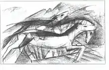Franz Marc, c. 1915: a sketch of running horses, from 'Sketchbook from World War 1. / Skizzenbuch aus dem Felde'