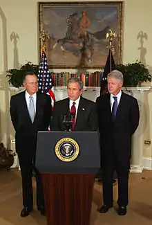 • Statements to press (20 February 2005), on serving with former political rival Bill Clinton in their efforts to raise money for tsunami recovery.
