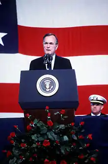 • Statement as Vice-president, during a presidential campaign function (2 Aug 1988)[2]. Some commenters at the time saw this as a reference to the Navy warship USS Vincennes having shot down Iran Air Flight 655 on July 3, although Bush did not explicitly mention the shoot-down in the speech. The quote of the week section of Newsweek (15 August 1988, p.15) described the quote as "George Bush, speaking to a group of Republican leaders about the accidental downing of an Iranian airliner", and in "Rally Round the Flag, Boys" by Michael Kingsley in TIME magazine (12 September 1988), the quote was described as "the Vice President's reaction to the shooting down of the Iranian civilian airliner".