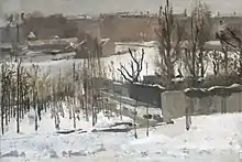 - Snow had fallen and from the museum [in Pittsburgh, The ] you had a beautiful view of a valley with a railway, through some sheds, etc. But I could not finish it, and today, Sunday, I went back there again, but then the snow was already so far away that I could not make anything of it any more. It is a pity. Otherwise I could have sold something. [The painting was sold to the Stedelijk Museum Amsterdam in 1934] (translation from the original Dutch, Fons Heijnsbroek)