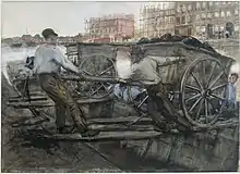 Breitner, c. 1890's: 'Grondkruiers met karren / Ground Porters with Carts', watercolor on paper