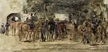 Breitner, c. 1881-83: 'Rustende cavalerie op een plein / Cavalry Resting on a Square', watercolor on paper