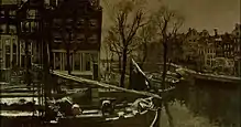 George Hendrik Breitner (12 September 1857 – 5 June 1923) was a Dutch painter and photographer. An important figure in Amsterdam Impressionism, he is noted especially for his paintings of street scenes and harbours around 1890 – 1920. He painted frequently en plain air, and became interested in photography as a means of documenting street life and atmospheric effects; he loved the Dutch rainy and snowy weather.
