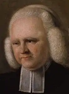 George Whitefield (16 December 1714 – 30 September 1770), also known as George Whitfield, was an Anglican itinerant Protestant minister who helped spread the Great Awakening in the Kingdom of Great Britain and, especially, in the British North American colonies. A leading evangelist and preacher of the era, he was one of the founders of Methodism in America. He became perhaps the best-known preacher in Britain and America in the 18th century, and because he traveled through all of the American colonies and drew great crowds and media coverage, he was one of the most widely recognized public figures in colonial America.