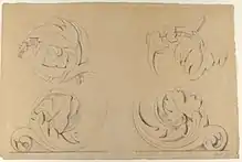 Seurat, c. 1875: 'Architectural motifs: Four Rinceaux', drawing in black chalk on paper; current location: Metropolitan Museum of Art - Drawings and Prints, New York