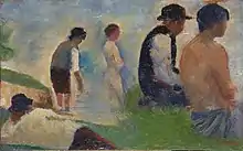 Seurat, c. 1883-84: 'Study for Bathers at Asnières', oil on panel; current location: National Gallery, London