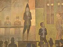 Seurat, 1887-88: 'Parade de cirque / Circus Sideshow', oil on canvas; current location: Metropolitan Museum of Art, New York - quote of the MoMA: 'This is Seurat's first nocturnal painting and also his first depiction of popular entertainment. It represents the parade or sideshow of the Circus Corvi, which had set up near the Place de la Nation in Paris in the Spring of 1887'