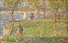 Seurat, 1884-85: 'Paysage et personnages', oil on panel; current location: National Gallery, London