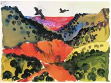 O'Keeffe, 1917: 'Canyons with Crows', watercolor and graphite on paper